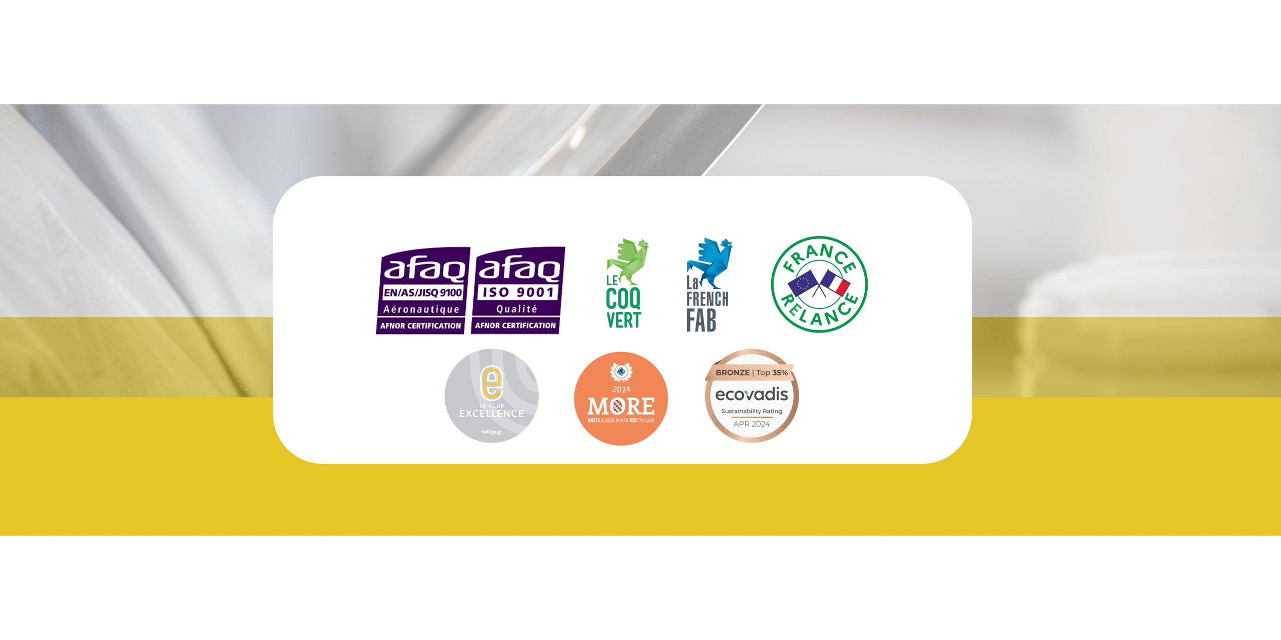 - EN 9100, norme issue du secteur aéronautique, attestant de processus de production hautement maîtrisés, d’une traçabilité complète et d’un sérieux opérationnel exigeant.